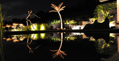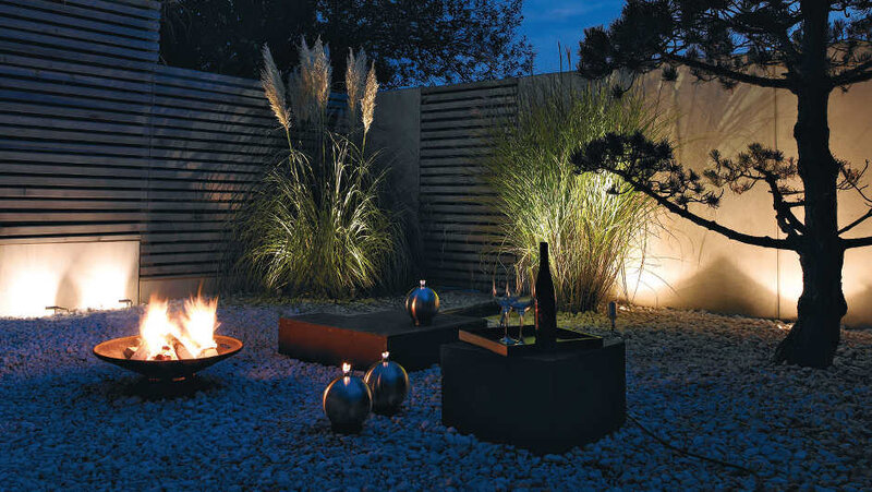 Geben Sie Ihrem Garten nachts mit der richtigen Beleuchtung Raum und erweitern Sie Ihr Wohnzimmer optisch zu jeder Jahreszeit. Solitaire, Pflanzen, Geländer, Kunstobjekte, Wände oder auch Wasser ins richtige Licht gerückt gibt ein Gefühl von Weite und Wärme.