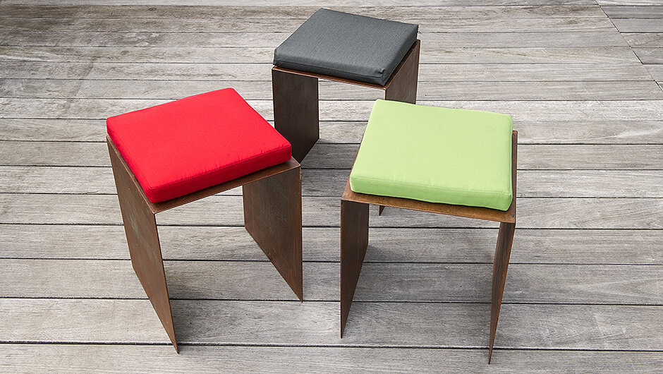Die Umsetzung erfolgt nach Ihrem Wunsch in Rohstahl grau, im Rost- oder im Schwarzblech-Look oder einbrennlackiert. Unsere Hocker werden auf Wunsch nach der Behandlung als Schutz konserviert (ausgenommen Variante «einbrennlackiert»). Der «QUBE» im Schwarzblech-Look wird mit der Zeit Flugrost ansetzen.