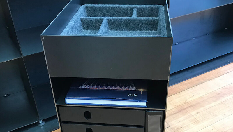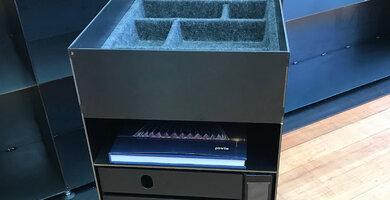 Unsere Trolleys sind in Schwarzblech gefertigt und konserviert. Die Grösse und Einteilung können Ihren individuellen Anforderungen angepasst und mit den für Sie optimalen Organisationselementen ausgestattet werden.