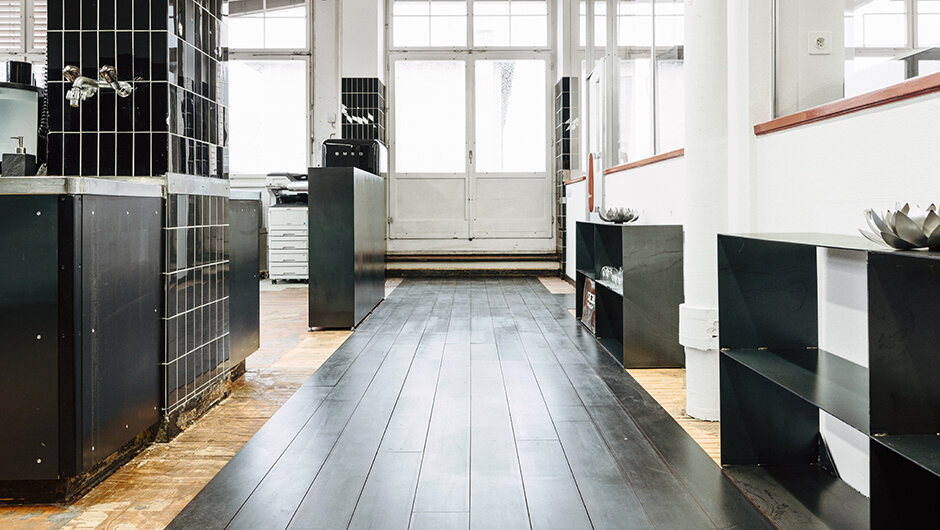 Stahl in seiner vielfältigen Anwendung kann auch als Bodenbelag zum Einsatz kommen. In einem ersten Prototyp kamen Breitflachstähle als Langriemen zur Anwendung.