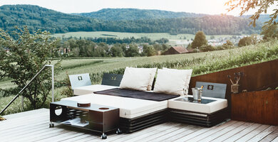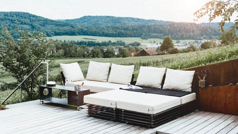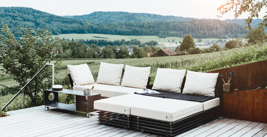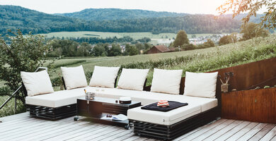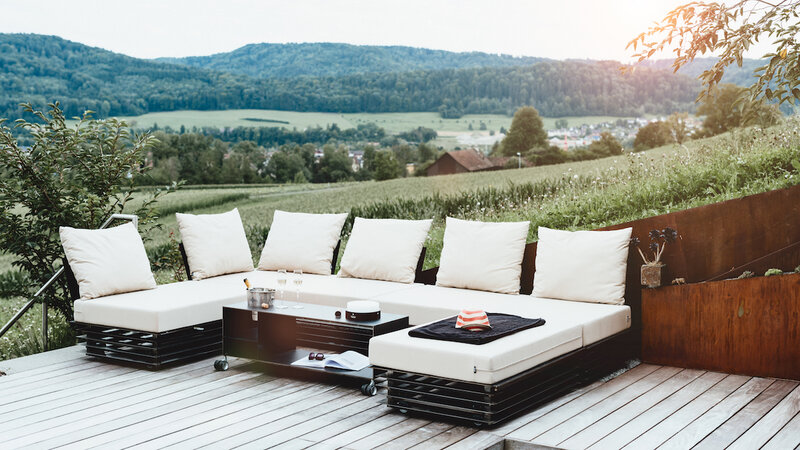 Auch die wetterfesten Kissen werden in Grösse, Farbe und Form individuell auf Ihre Wünsche abgestimmt. Die Spezialschaumstoffe und Stoffüberzüge gewähren einen ausserordentlich angenehmen Sitzkomfort. Der grosse Vorteil bei diesen Kissen ist zudem, dass sie auch bei Schlechtwetter nicht mehr ins Haus geräumt werden müssen. Das reduziert Aufwand und Lagerbedarf.