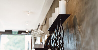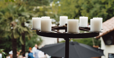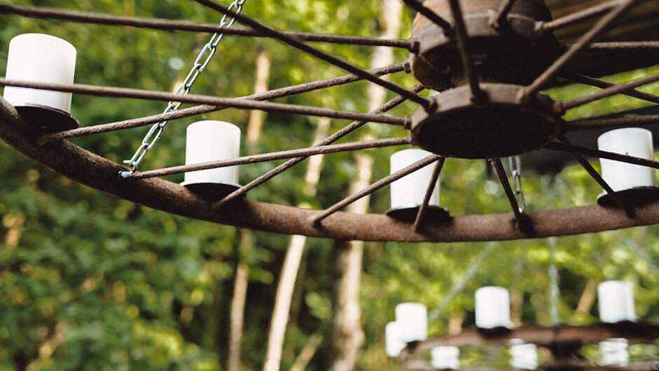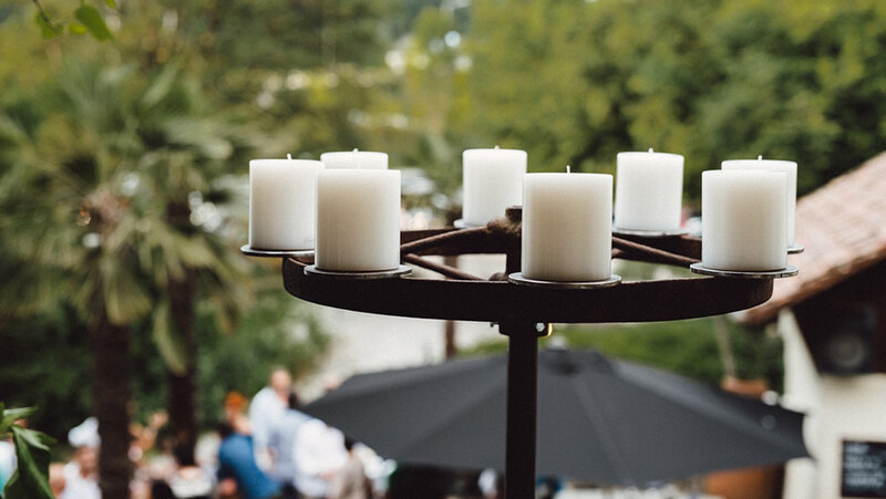 Ein Hingucker waren sicherlich unsere «CARRIAGE WHEELS». Die beiden Kutschenräder aus dem 17. Jahrhundert wurden vier Generationen lang weiter vererbt und schlussendlich infolge Platzmangel an uns verkauft. Die ehemaligen Besitzer waren erfreut zu hören, was aus den Rädern entstanden ist. Jedes Rad hat einen Durchmesser von 140 cm und wurde mit 10 Farluce Inside Kerzen (10/12 cm) bestückt.
